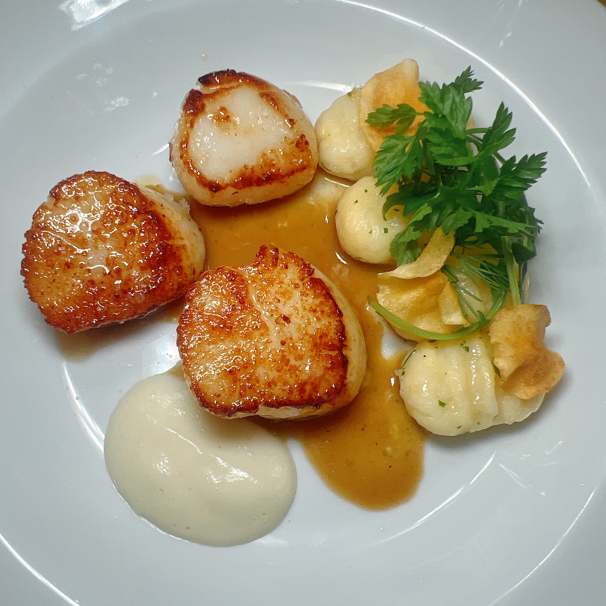 Girolles poêlés, Ris de veau dorés, gnocchi, crème de parmesan, jus de volaille 14€