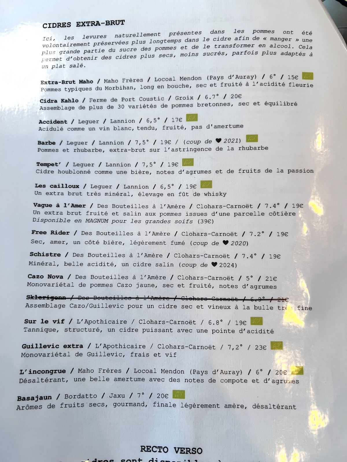 Le cidre conseillé, une tuerie, le Point Barre 2020 de Des Bouteilles à l’Amere que j’aime beaucoup et ils ont aussi, ceux de l’Apothicaire, les deux sont à Clohars-Carnoët à 1h10 d’ici.