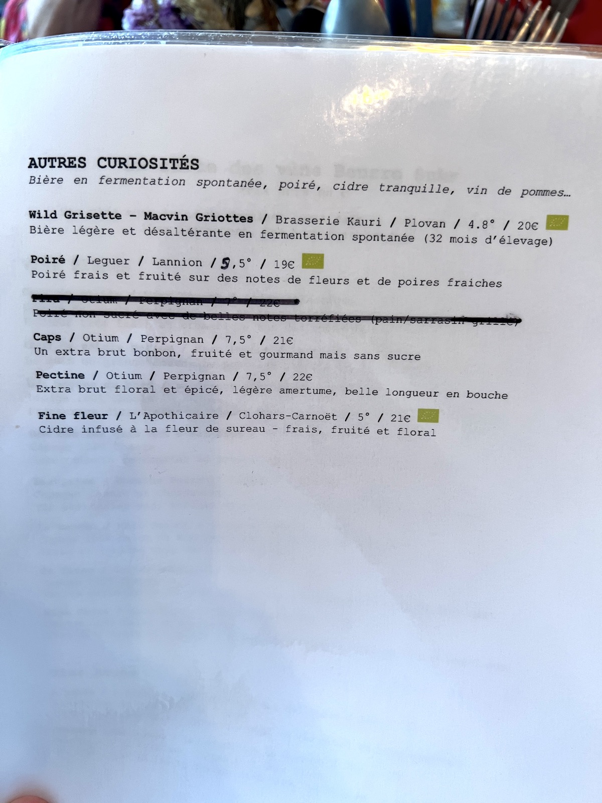 On sort de là sans la lourdeur qu’on ressent parfois après 3, 4 crêpes et un cidre pas dingue. Ici on se sent léger, repus et heureux. Et l’addition se révèle très cool malgré les prix de cidre à la bouteille forcément plus chers que lorsqu’on prenait un cidre non artisanal, mais néanmoins pas si chers quand on connaît leur prix. J’ai aussi beaucoup apprécié que leurs cidres au verre soient aussi des cidres de qualité, comme celui du domaine de Kinkiz.