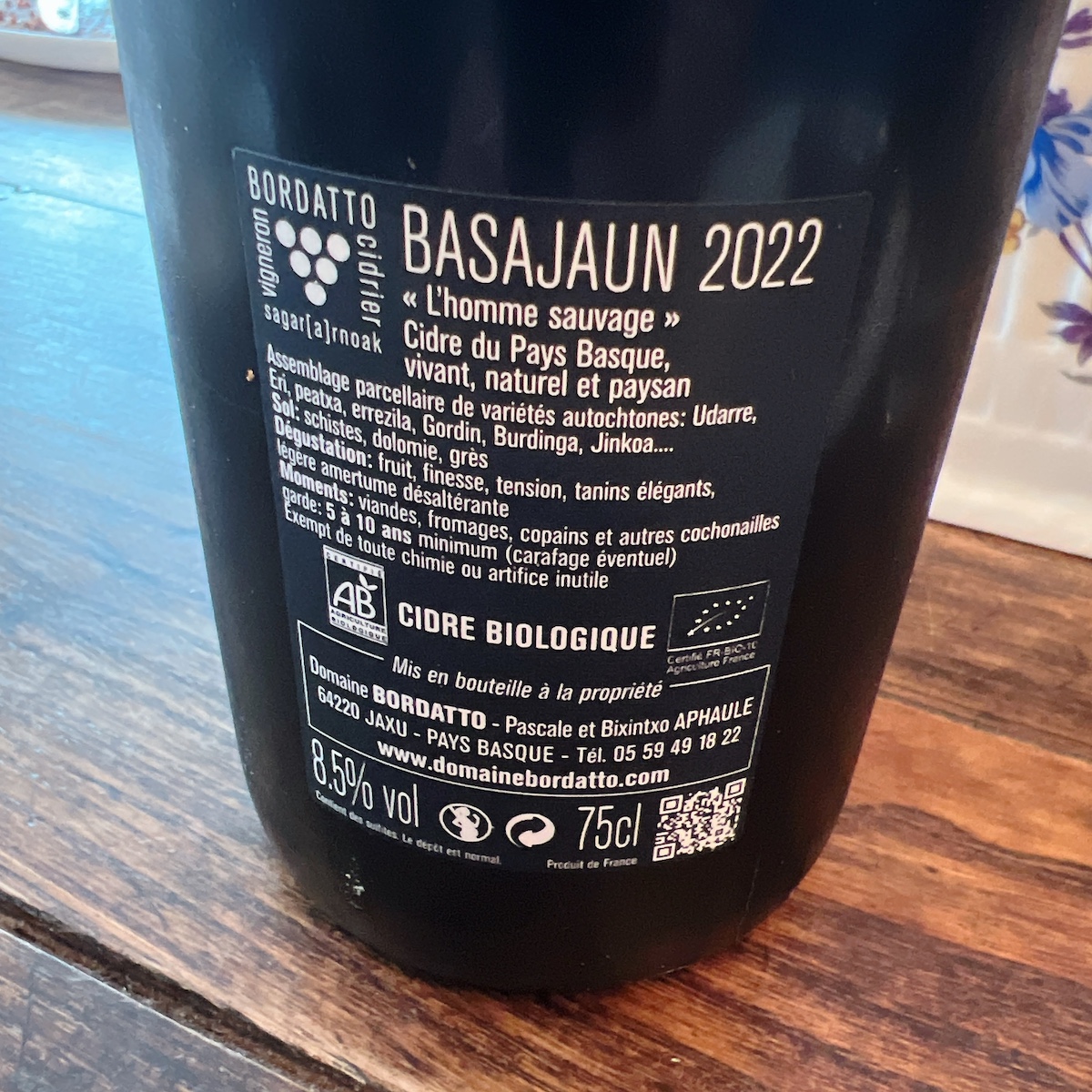 Toujours cette super sélection de cidres nature. Cette fois-ci, j’a goûté ce cidre basque Basajaun du Domaine Bordatto.