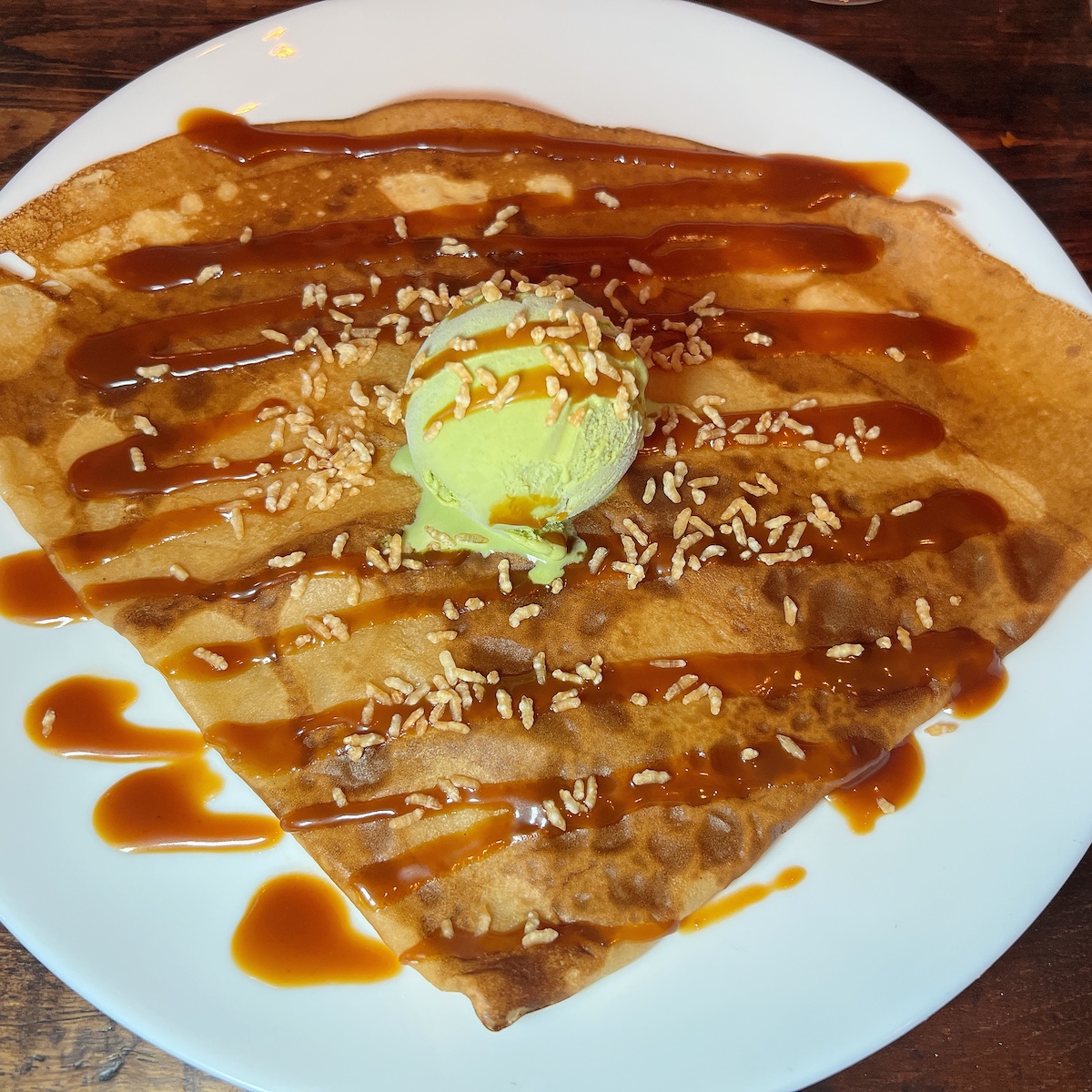 J’ai fini avec une Akira : boule de glace, thé vert matcha, caramel gingembre et riz soufflé.