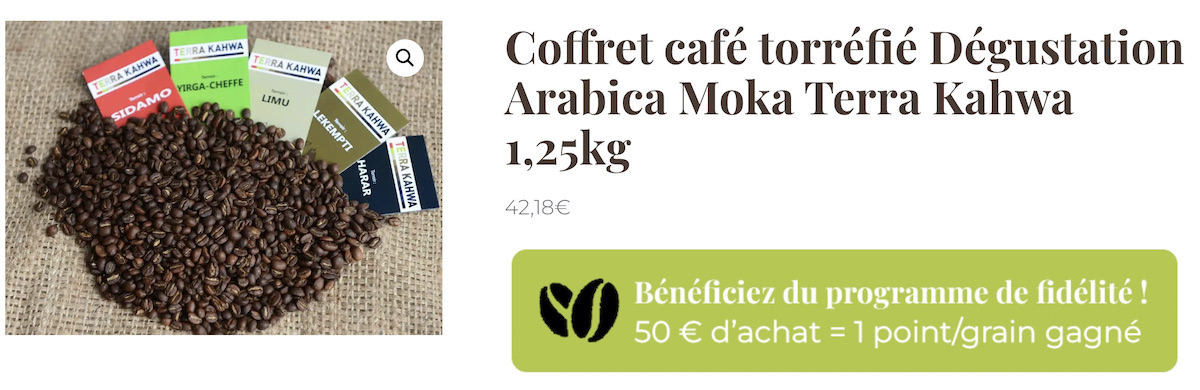 Grand amateur de café, j’adore le café Terra-Kahwa : pour leur démarche d’abord, c’est une équipe de passionnés basés en Isère qui a décidé de distribuer exclusivement du café éthiopien en direct de fermes qu’ils connaissent et avec lesquelles ils travaillent étroitement; ensuite pour le rapport qualité-prix dingue puisque leurs cafés sont vendus entre 6,65 et 10,20€ les 250g, ce qui, pour un café de spécialité, est très bon marché.
