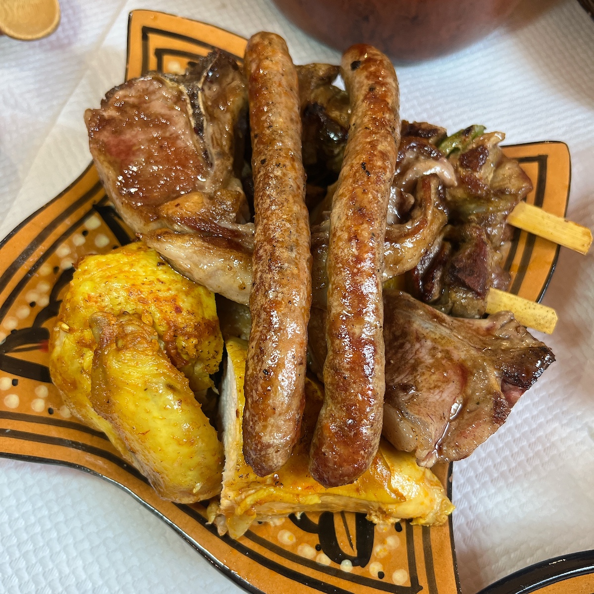 Ici c’est un parfait entre deux, le Maison pour deux personnes avec poulet, brochettes, côtes d’agneau, boulettes et merguez est à 38 pour 2.