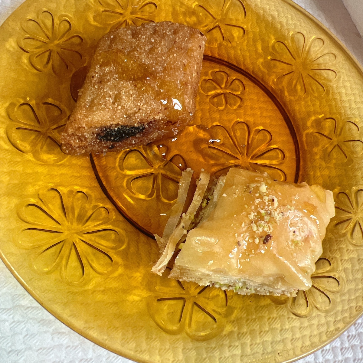 Pour info les pâtisseries sont maison, le makrout et la corne de gazelle sont faits par la mère et la tante et le reste comme le baklava par un ami du fils. J’ai trouvé le baklava trop sec, makrout et corne de gazelle, bien mais pas renversantes non plus.