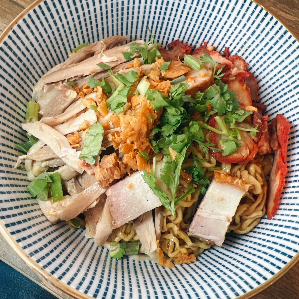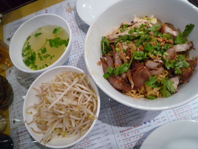 On avait encore une petite dalle alors on a demandé au serveur ce qu’il nous recommandait pour finir : Nouilles aux 3 trésors (porc laqué, porc croustillant et poulet);