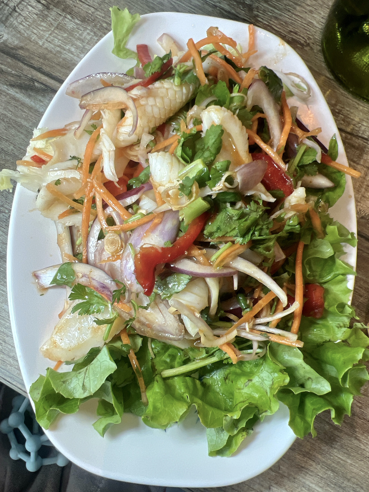 Salade pimentée aux calamars, géniale, très bonne et croquante, estivale