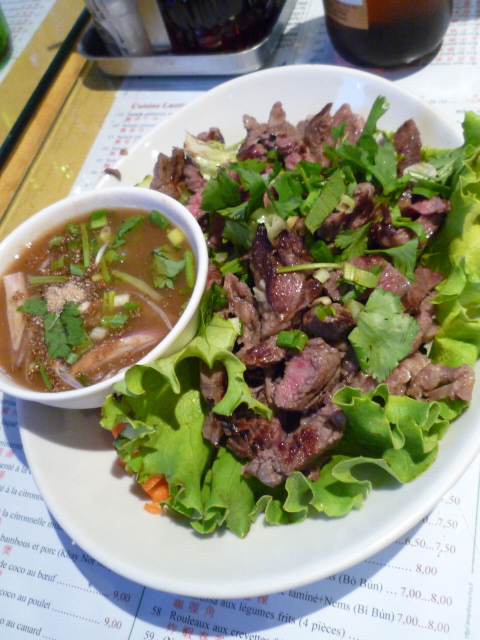 Steak Laos 9 euros C’est un steak saignant avec une sauce qui défonce mais dont je serais bien incapable de dire ce qu’elle contenait.