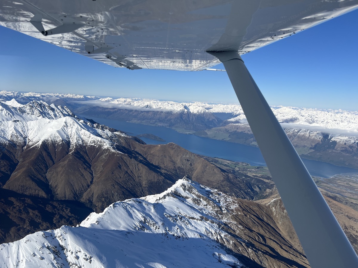 Je suis donc tombé sur cette compagnie Glenorchy Air qui a des avis dithyrambiques et il faut dire qu’ils sont très sympas et que la boîte reste à un niveau quasi familial. Il y a toujours le risque quand on réserve que le vol soit annulé et donc remboursé si les conditions météo ne le permettent pas. La nature dans cette région est capricieuse et a toujours le dernier mot, il faut en effet survoler une chaîne de montagne d’une beauté, mais aussi d’une puissance, à couper le souffle.