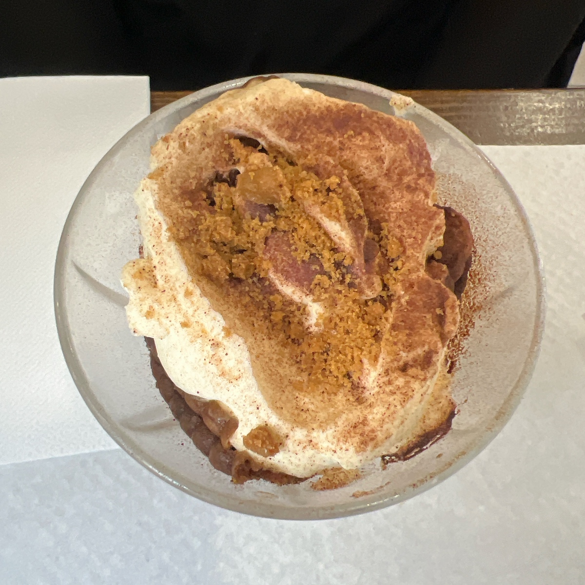 On s’est emballé et on a pris le tiramisu spéculoos car il était maison nous a dit le serveur et bien même si ce n’est pas ce qui m’a le plus marqué, il était loin d’être indigne, on sentait l’envie de bien faire.