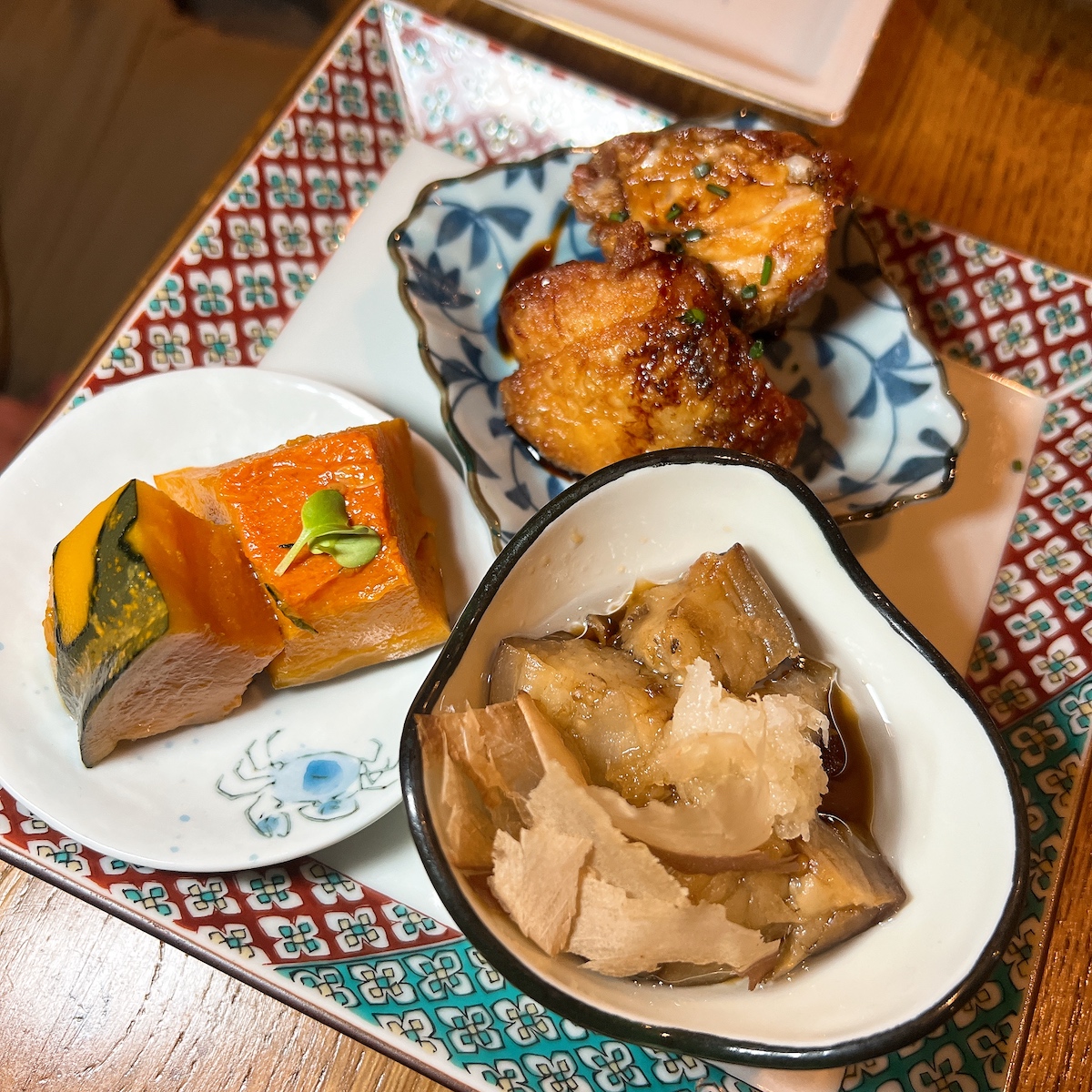 Ensuite j’ai capté en parlant à une table de 4 voisine de la nôtre (dont 3 japonais), ils n’avaient pas pris de sushis mais plutôt un ensemble de tapas/plats dont leur conseil, le Zensai Moriawasé, assortiment de 3 hors d’oeuvres du jour. C’était merveilleux et gourmand 10€, je pense qu’il y en avait deux ici, ils avaient doublé pour deux personnes, le poulet était fantastique.