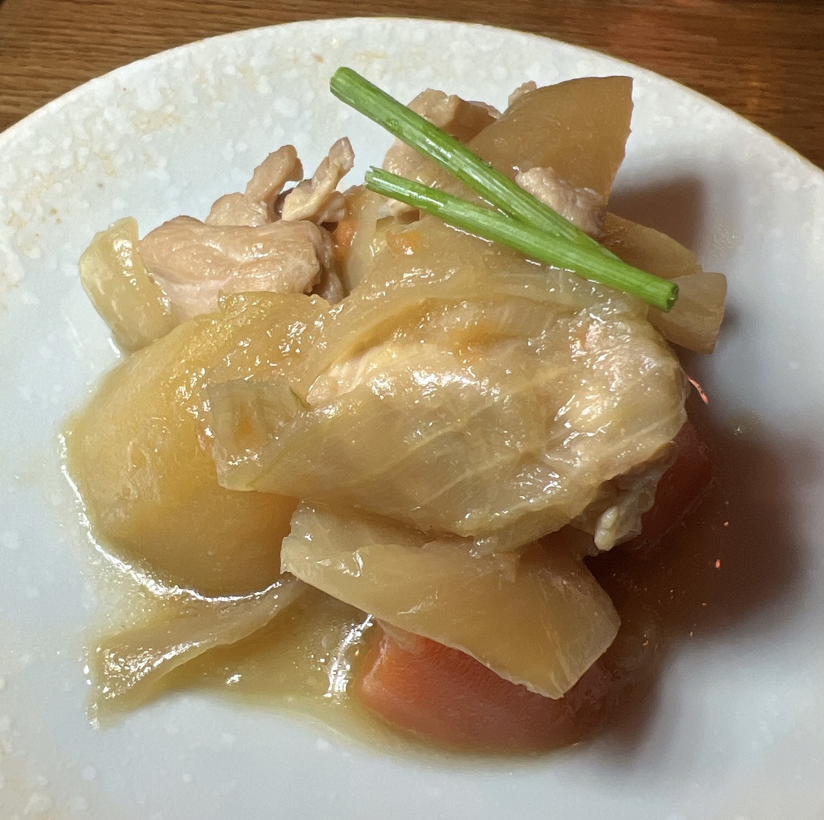 On commence avec une zensai (entrée), ici du poulet avec des pommes de terre et du chou, j’ai aimé, 1) cela change des entrées habituelles dans un resto japonais, 2) j’aime bien quand les japonais nous montrent comment ils font les plats mijotés et réconfortants à leur façon.
