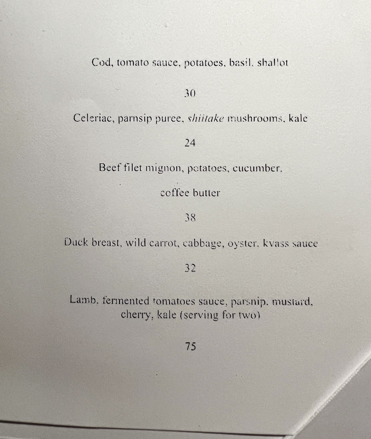 J’ai enfin été manger à Nüman, LE gastronomique de Kaunas, j’avais tenté de réserver en janvier 2018 mais ils avaient fermé le resto sans prévenir. 7 ans après me voilà. Il s’en est passé des choses depuis. Le chef, l’équipe, les propriétaires, tout a changé il y a quelques années nous a dit le serveur. Le Michelin est arrivé en Lituanie en 2024 et les deux dernières années le restaurant a été récompensé.
