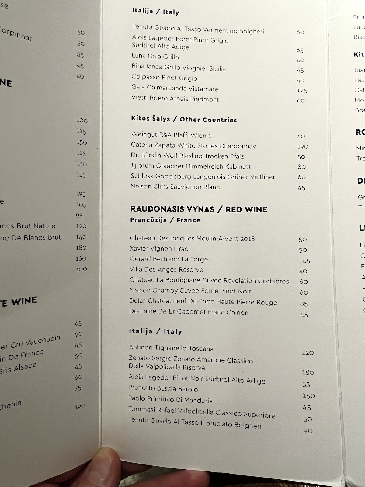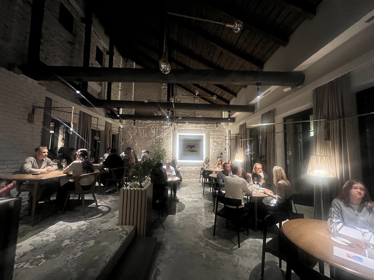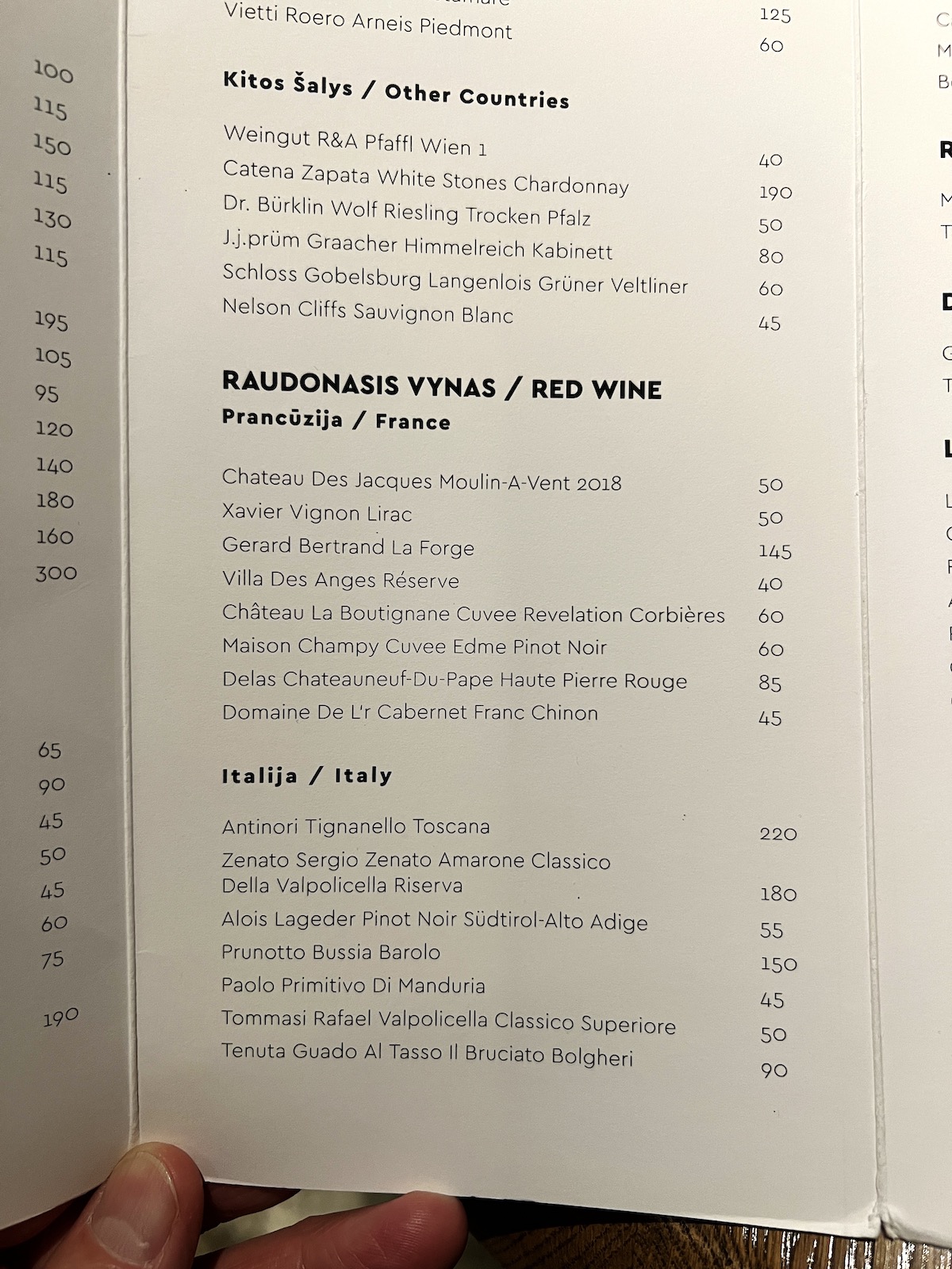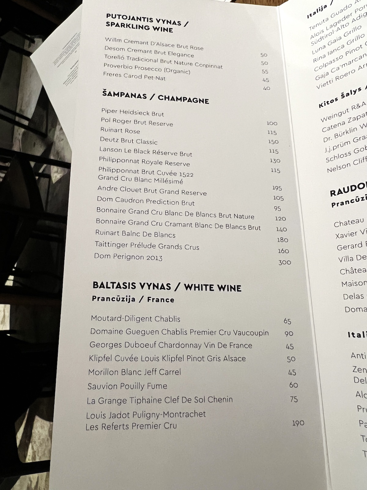 Nous avons attendu 20 minutes, ensuite on nous a placés mais là encore on a attendu facilement 20 minutes sans que personne ne vienne nous voir. On s’est manifesté et le manager est venu à 20h45 en s’excusant de ce retard inhabituel. En Lituanie les gens mangent tôt, le resto ouvre à 17h et donc avec notre résa à 20h, nous étions en plein dans le service des derniers arrivés.