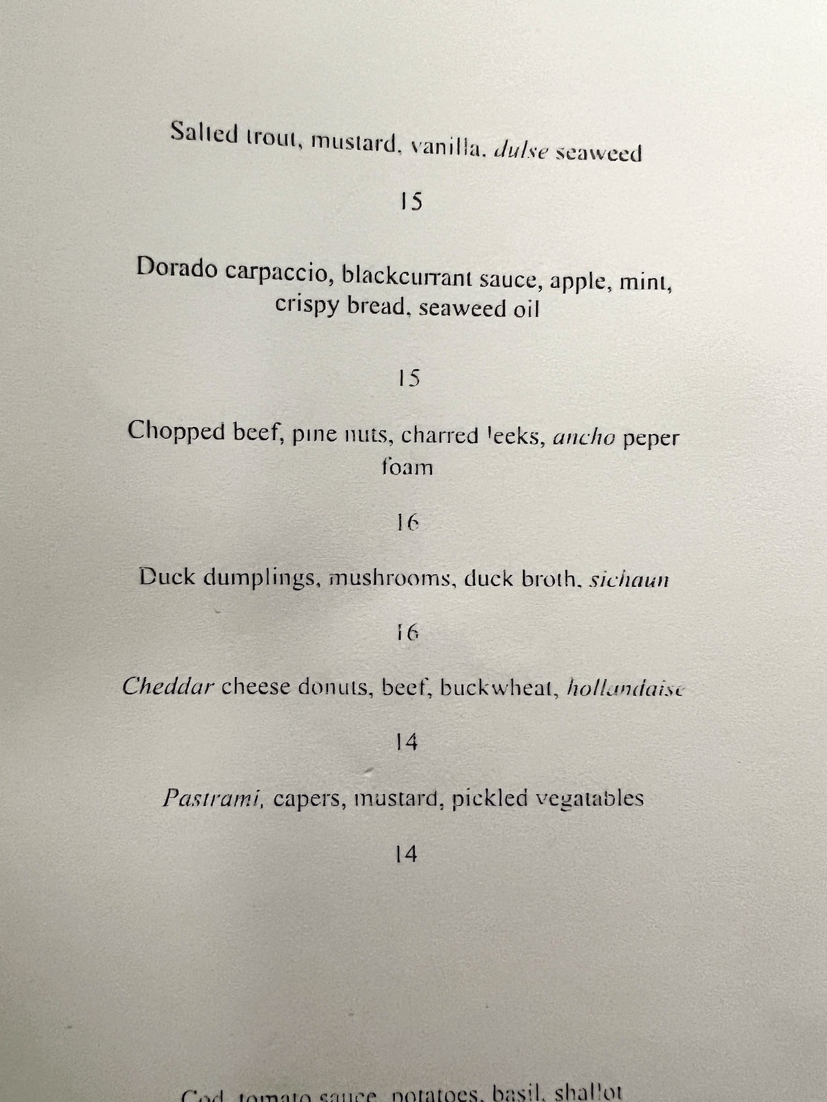Mais enfin quand même pour un Michelin, on attendait plus carré et plus attentionné. Les pays payent pour faire venir le Michelin, le Michelin aide des pays à développer leur scène culinaire et c’est tant mieux, ils méritent amplement et depuis bien avant 2024, en revanche le Michelin est souvent peu disert sur le service or cela aiderait les restaurants d’être aussi commentés là-dessus.