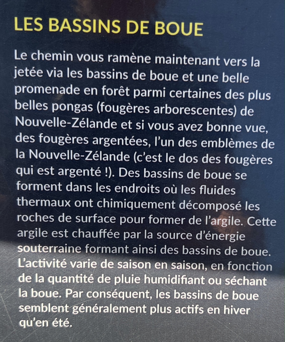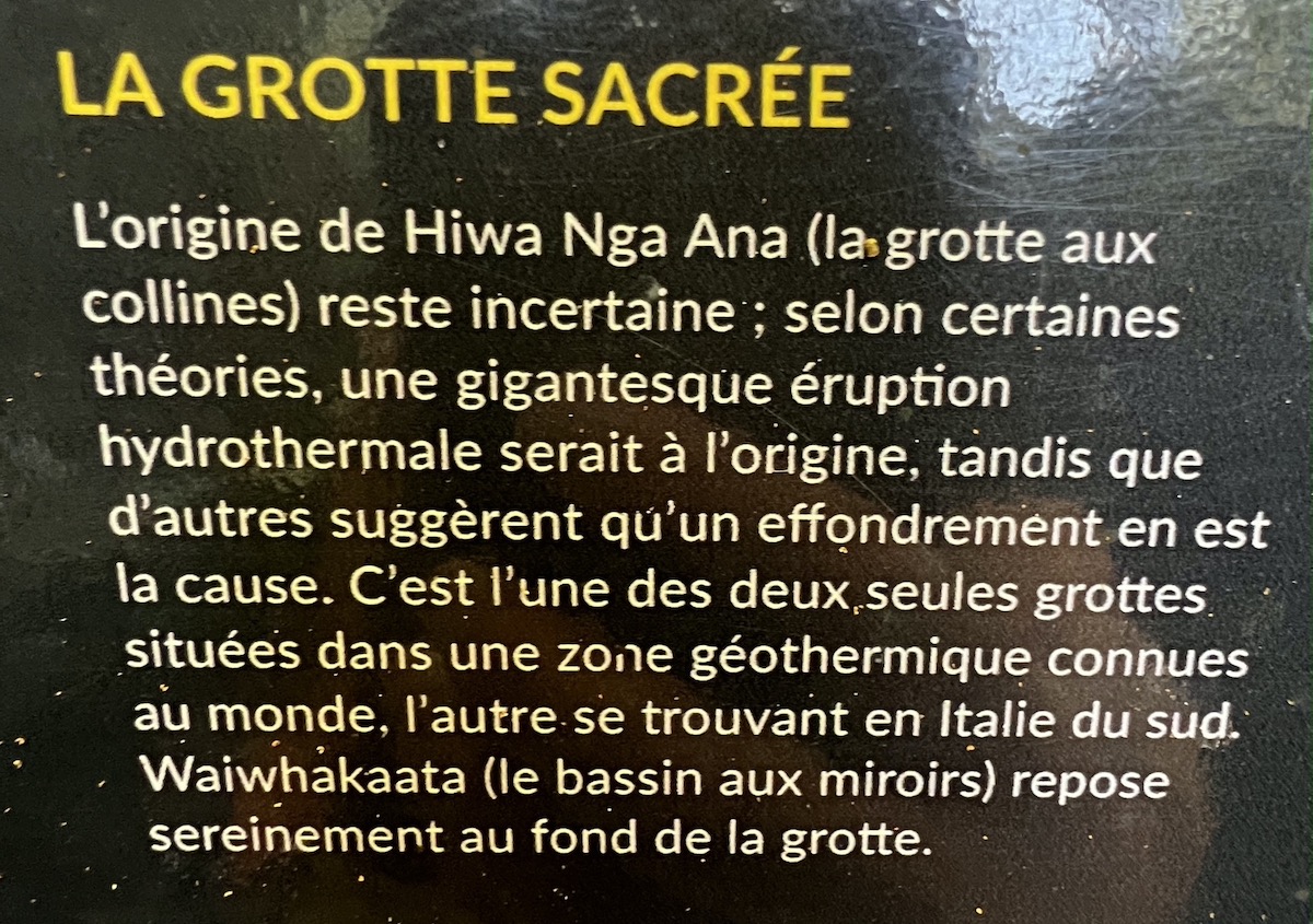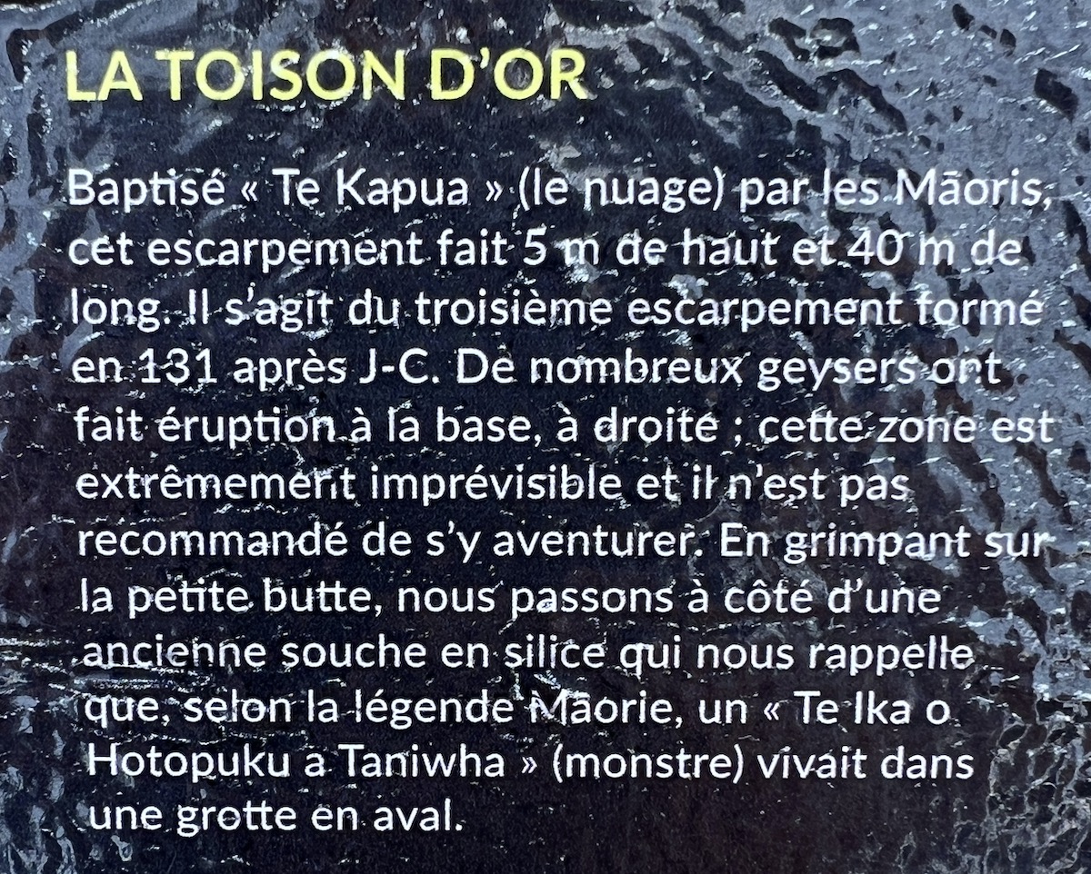 Il y a quantité de parcs avec des sources d’eau chaude dans la région, mais le Orakei Korako Cave & Thermal Park a le mérite d’être dans un environnement très naturel. Le parcours est très bien fait et les cartels sont aussi en français si bien qu’on comprend les phénomènes géothermiques à l’oeuvre. Last but not very least, c’est un site maori. A faire absolument quand on est dans la région entre Rotorua et le lac Taupo. Le site est splendide.