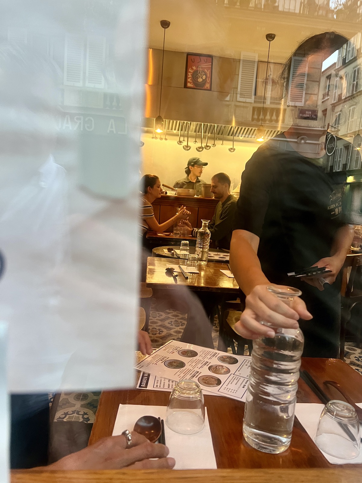 Côté service, c’est très sympa et sans stress, le couple qui est aux fourneaux participe aussi au service en salle avec le reste de l’équipe. Seul petit point : c’est parfois un peu lent, ce qui ne nous dérange pas une fois qu’on est assis et on préfère ça au fait d’être jeté dehors mais on a quand même une pointe de compassion pour ceux qui sont dehors. En tout cas c’est génial de manger sans stress et de sentir qu’on ne vous chasse pas, wagaya ok a dit.