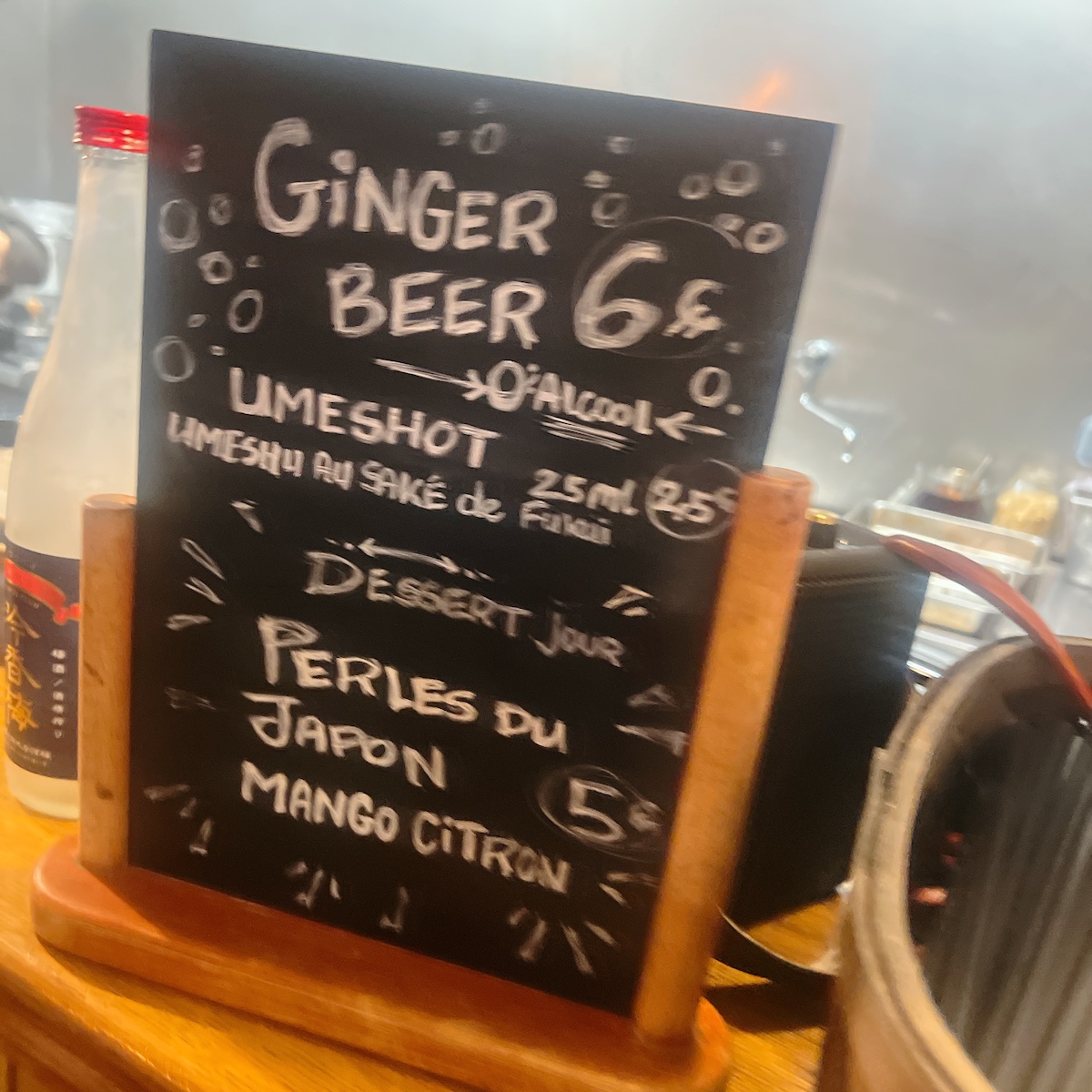 En dessert j’ai pris les perles du Japon Mango Citron à 5€, sympa le prix. Et comme il n’y avait plus l’autre dessert, un mochi haricots rouges de mémoire, on a proposé aux personnes qui étaient avec moi un umeshu à la prune soit une boisson alcoolisée produite à partir de saké et de prunes locales Ume de la préfecture de Fukui. J’en ai pris aussi pour la peine, parfaite pour conclure un repas.