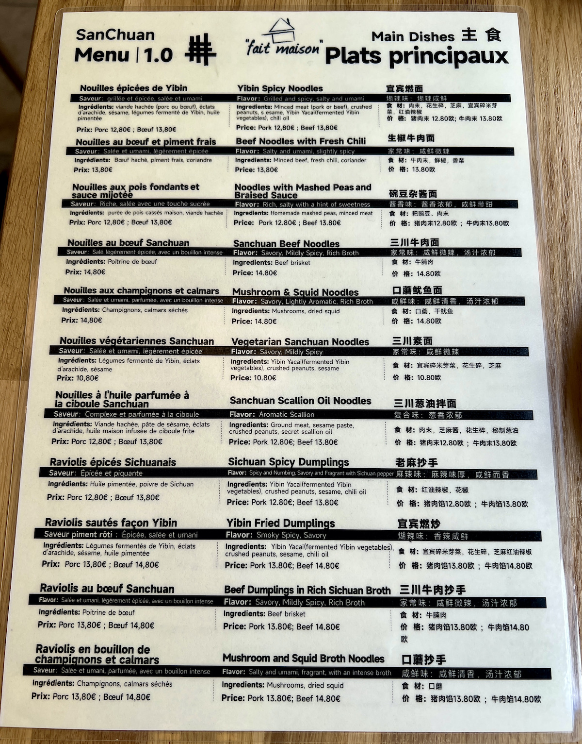 Sanchuan est un restaurant proposant une cuisine du Sichuan, le chef est originaire de la ville de Yibin, qui se trouve au sud de la province du Sichuan et est limitrophe de la province du Yunnan.