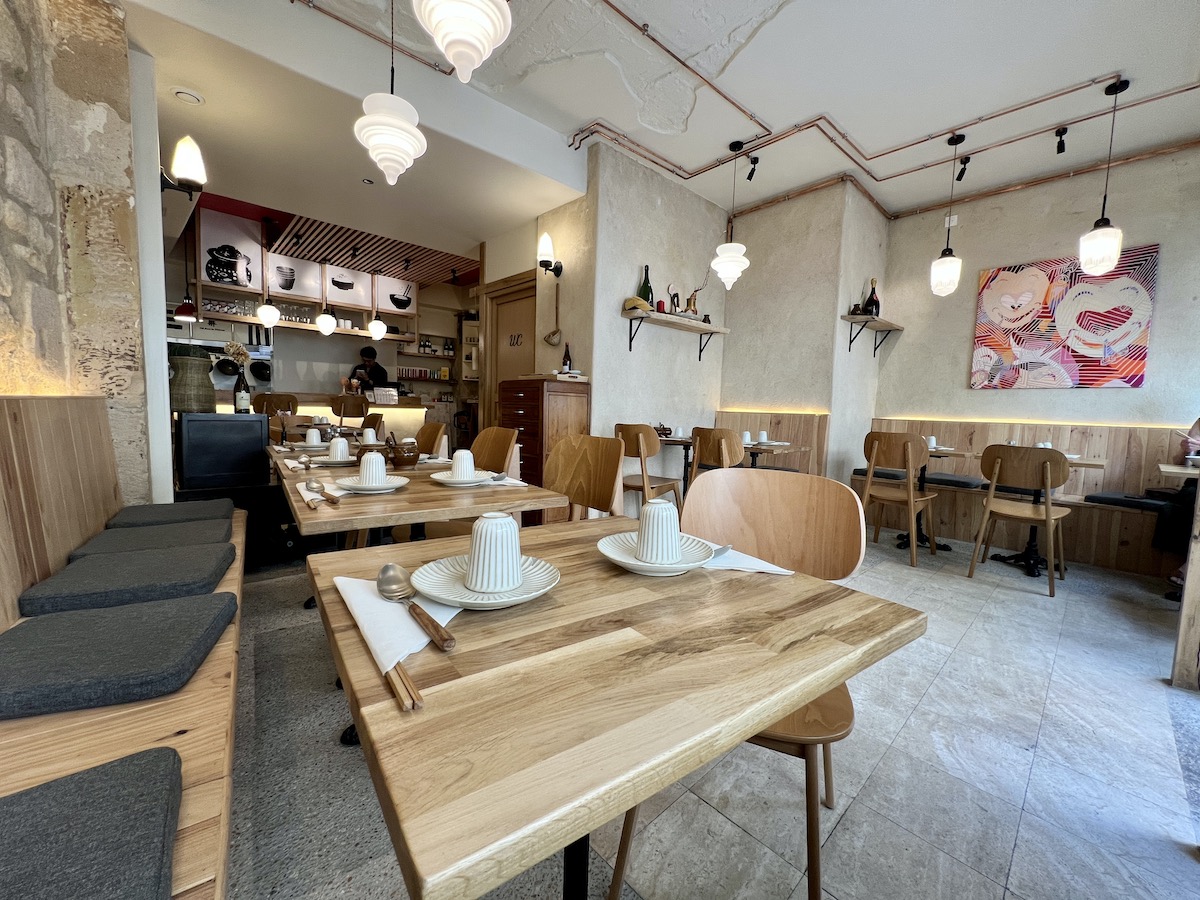 Le restaurant a ouvert courant 2025 et la décoration est agréable, à la fois stylisée et confortable. Il faut dire que cette rue des Fossés Saint Marcel, entre le jardin des Plantes et le boulevard Saint-Marcel, donne envie de se poser.