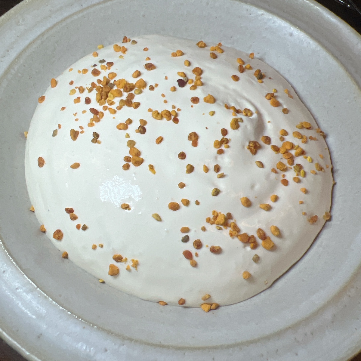 Crème tiramisu infusée au melilot, quetsches, croustillant amandes 11€