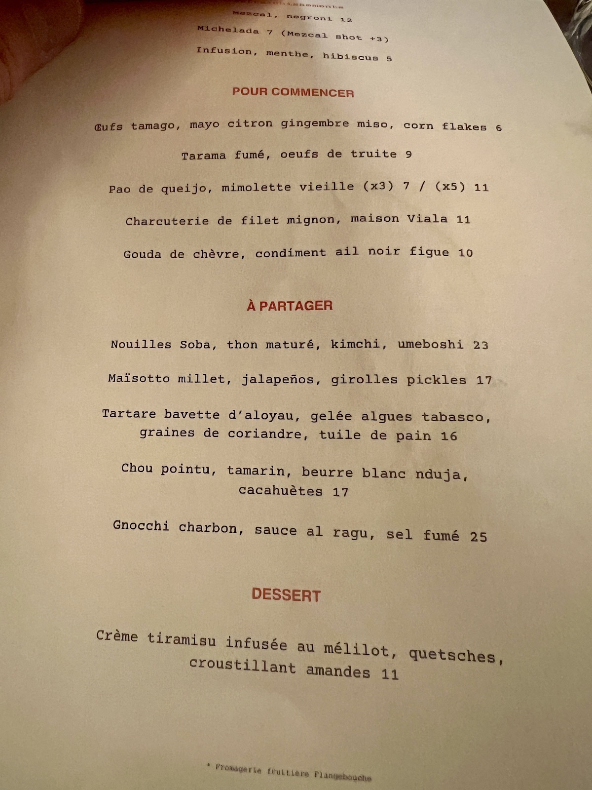 Là aussi, un plat qui m’a donné envie d’utiliser l’expression pourtant déjà rincée, “c’est une tuerie”. C’était très original et je me suis dit : enfin quelqu’un qui réinvente le tartare. Peut-être que la recette existe ailleurs mais je n’en avais encore jamais goûté et c’était diablement bon et pertinent.