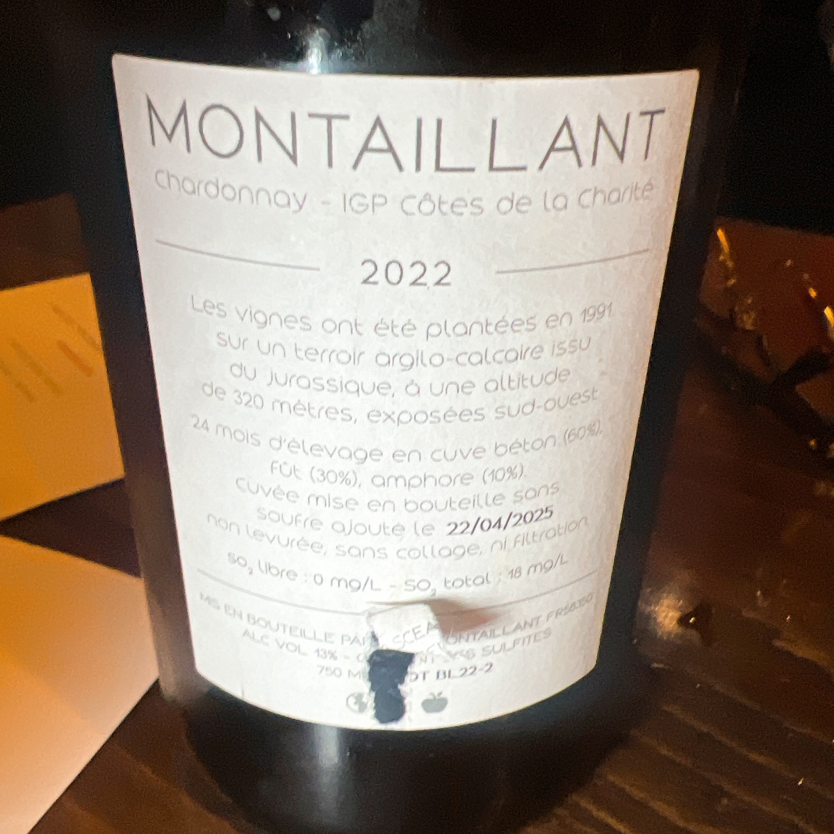 100% Chardonnay, IGP côtes de la Charité, 2022 Domaine Montaillant 39€