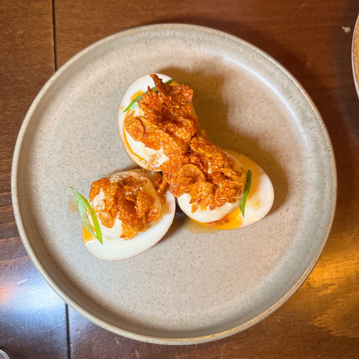 Oeufs tamago, mayo citron gingembre miso, corn flakes 6€