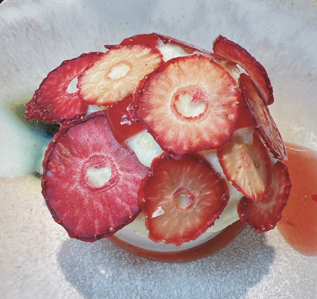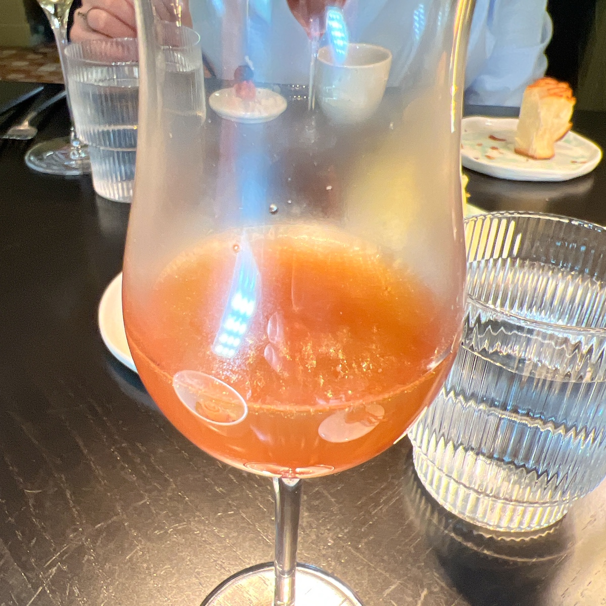 On finit en beauté avec un superbe et surprenant accord mets-vin (tant mieux on demande à être surpris) : un vin irlandais de framboise pour accompagner un dessert à la fraise. La petite histoire derrière ce vin : le torréfacteur Early Bird est à une centaine de mètres de Virtus. Le sommelier est proche du patron qui l’a aiguillé sur la piste de ce vin ci-dessous de chez Wicklow Way Wines, moins confidentiel au vu de leur site que ce qu’en avait dit le sommelier; ils mettent par exemple en avant sur leur instagram le fait qu’ils soient recommandés par Vogue British et le Lonely Planet. Il n’empêche que ce vin était fantastique, cela m’a évoqué un vin de framboises également bu au restaurant La Malo dans le 18ème.