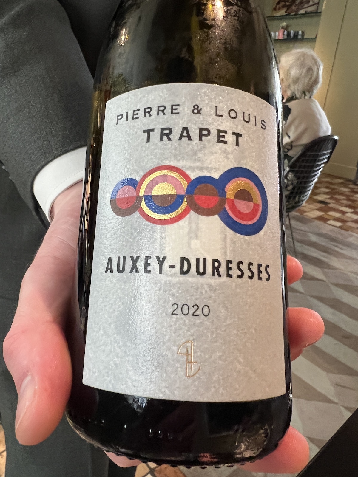 Cette fois-ci un Auxey Duresses blanc de Pierre & Louis Trapet 2020, un très beau Chardonnay, mais là encore, même si je trouvais que cela écrasait moins que le précédent, je le trouvais encore trop fort par rapport à notre plat. D’ailleurs je vois que sur le site de la maison du vin, dans les accords préconisés, on parle de volailles, viande rouge rôtie, fromage; pour du poisson qui plus est peu cuit, des petits pois, il m’est paru trop puissant.
