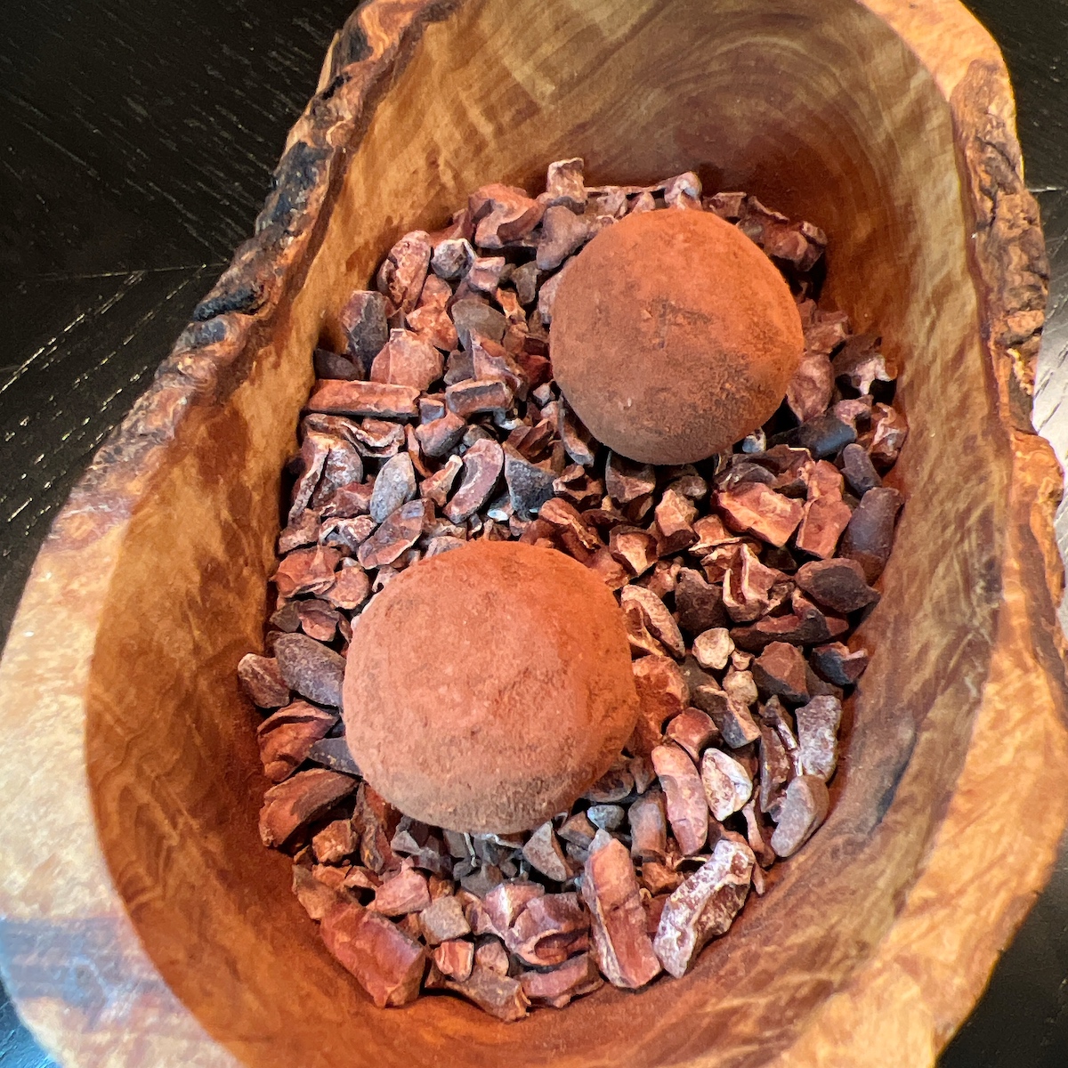 Le sommelier nous a expliqué que le chef n’utilisait jamais de chocolat car il ne voulait pas d’excès de sucre pour conclure le repas et pourtant la dernière des mignardises, c’est-à-dire ce par quoi on conclue le repas, la dernière touche qui nous restera en bouche, était précisément une truffe au chocolat, j’ai trouvé qu’il y avait un décalage avec le discours pourtant très tranché sur le chocolat.