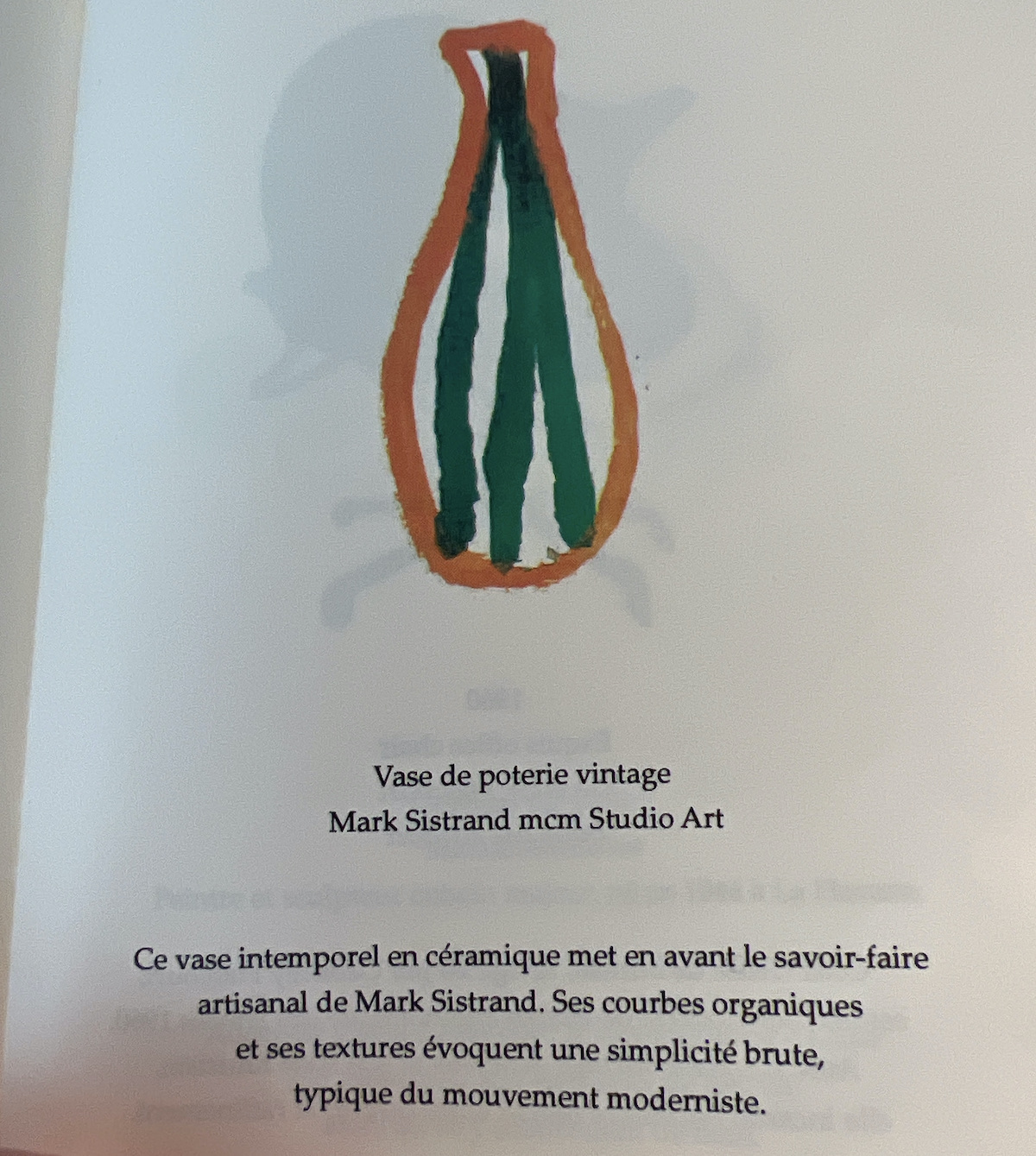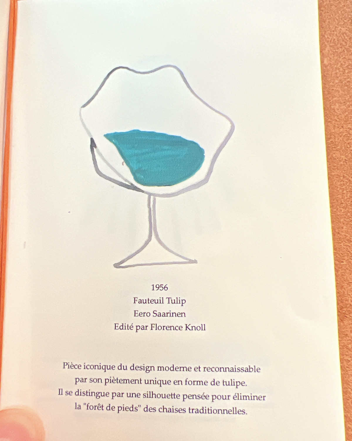 Nous avons alors compris qu’on nous avait aussi donné en plus du menu le catalogue des objets qui étaient exposés. C’est joliment fait, malin, chaque objet bénéficie d’un dessin et d’une description.